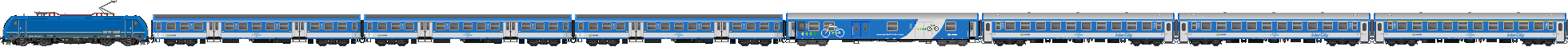 Budapest-Déli 7:35, Budapest-Kelenföld 7:42, Székesfehérvár 8:21, Siófok 8:55-8:57, Balatonszentgyörgy 9:56-10:01, Nagykanizsa 10:41